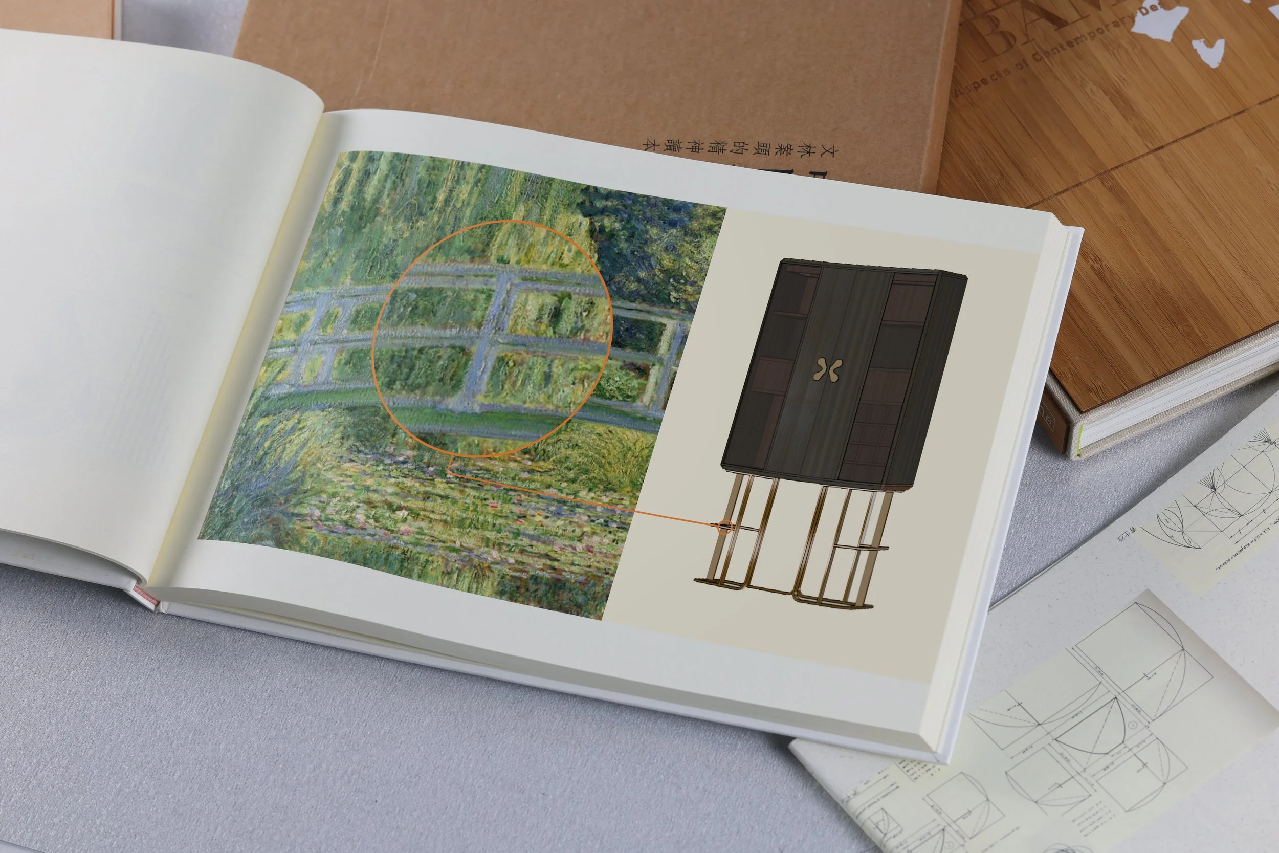 Monet spent much of his life exploring the interplay of light, color, and atmosphere. He was known for painting the same scene multiple times, capturing the fleeting effects of natural light at different times of day. In the afternoon sunlight, Monet’s garden comes alive—the water surface reflects like a mirror, with lilies and lotus flowers floating delicately. This space becomes a harmonious blend of Western colors and light with the poetic sensibilities of the East. It’s from this enchanting atmosphere that the inspiration for the "Garden" furniture collection was born.